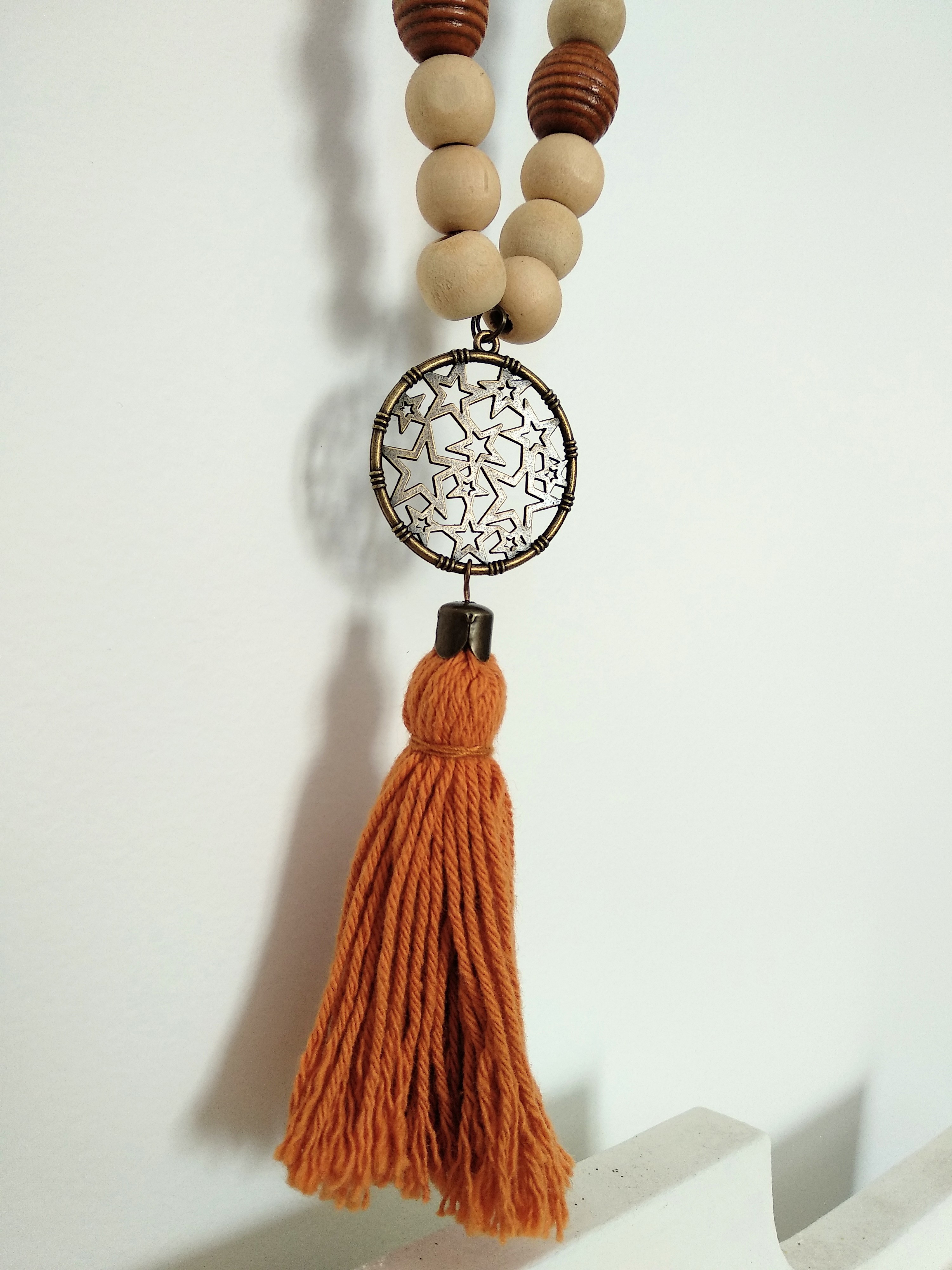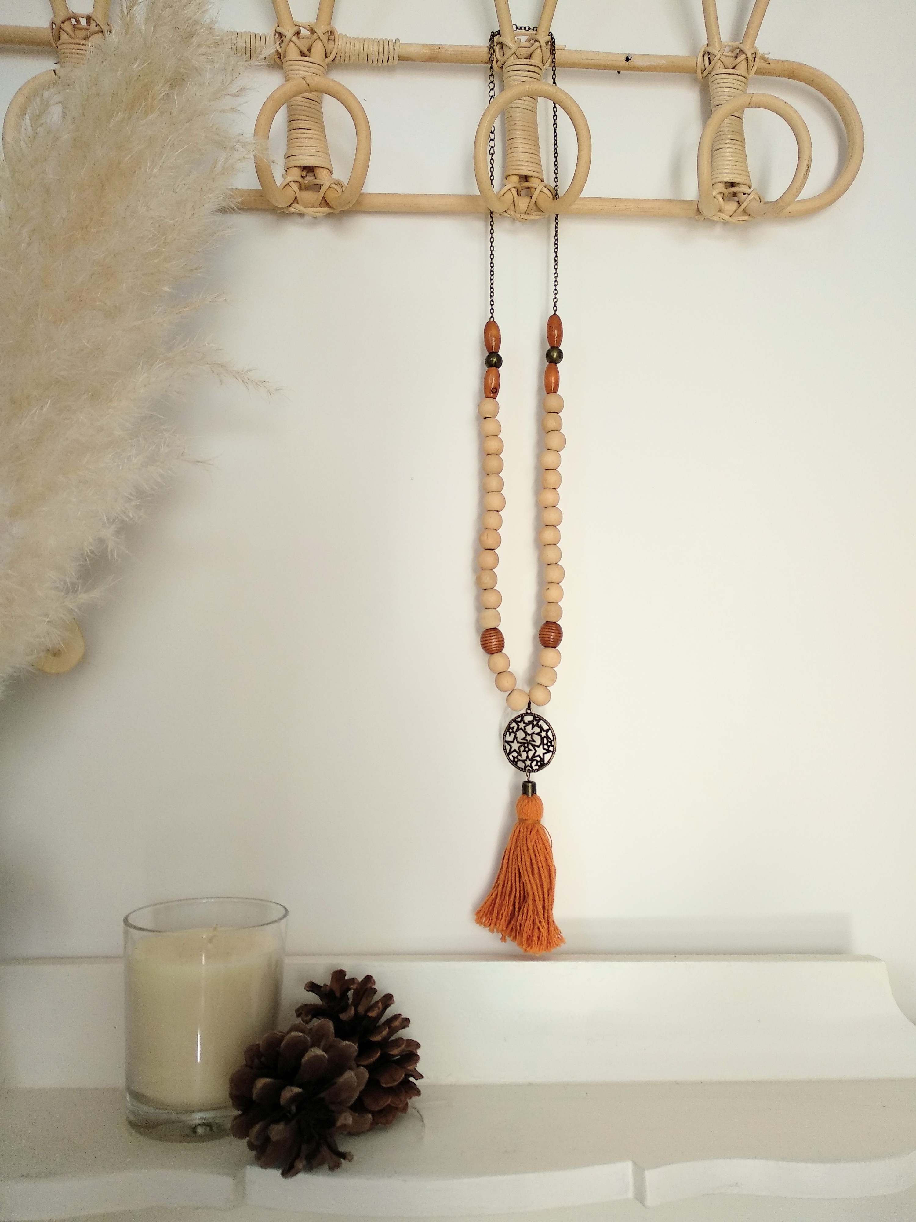 Collier sautoir Mala bois caramel