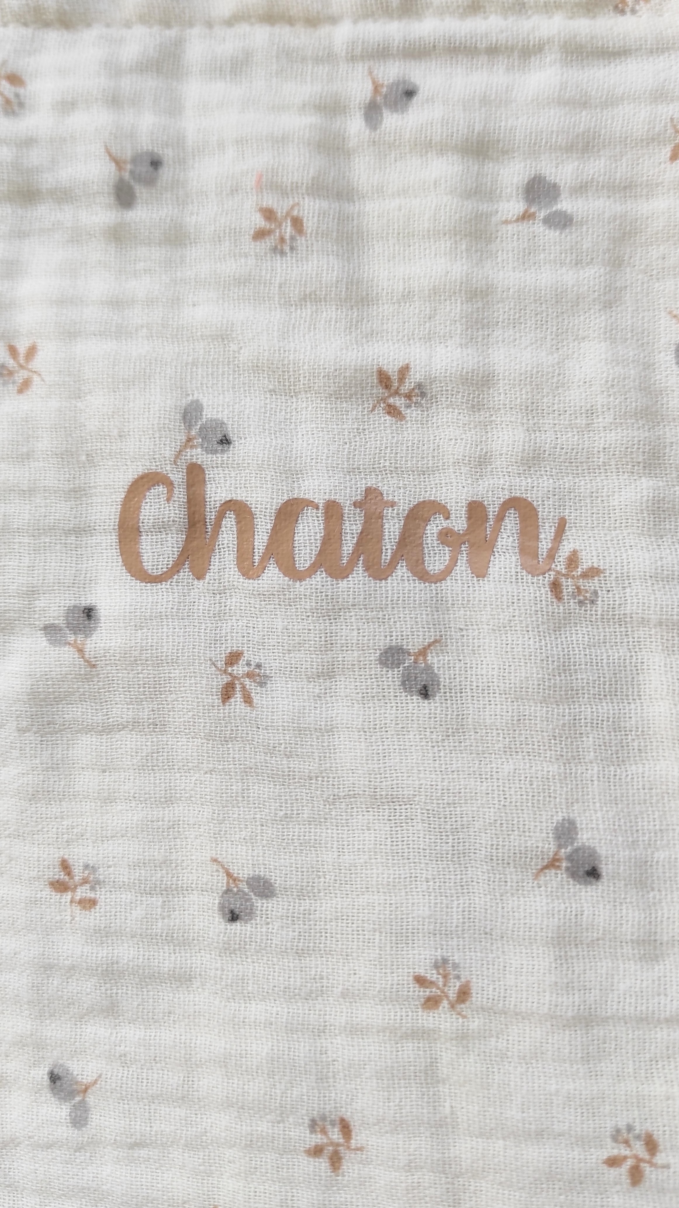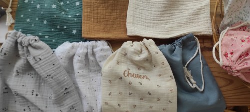 Pochon tissu gaze de coton bio fleurie à personnaliser
