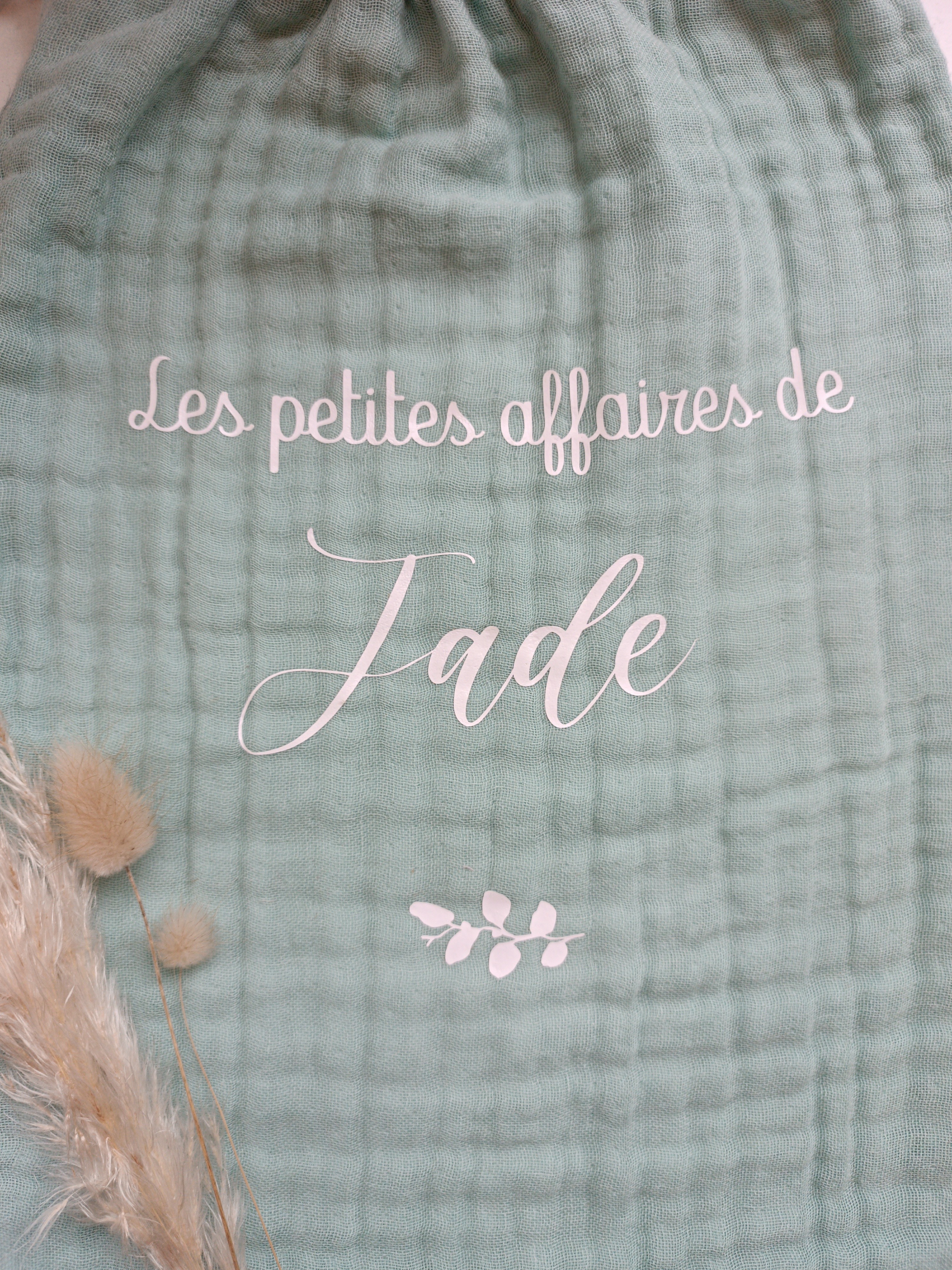 Pochon pochette petit sac de rangement sac à doudou ou tenue de rechange avec message à personnaliser.