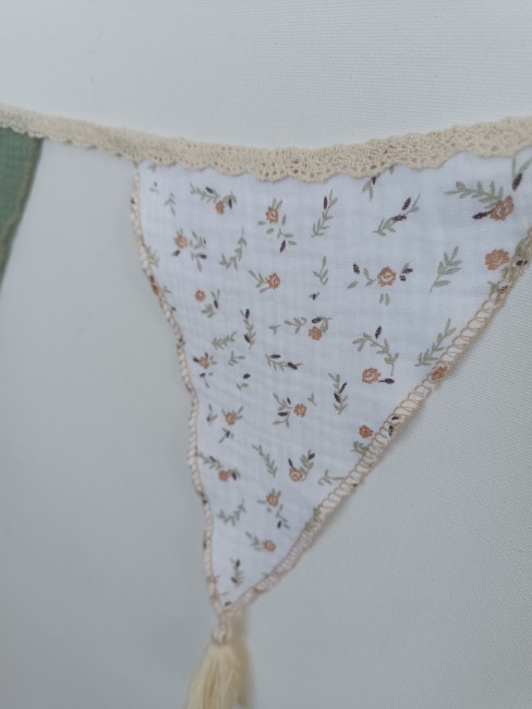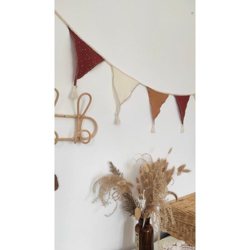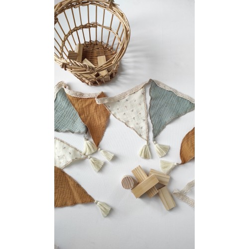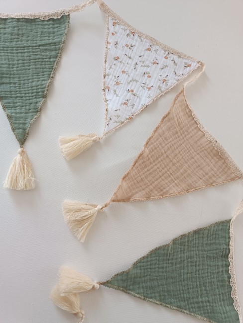 Guirlande de fanions en gaze de coton certifié bio Gots eokotex pour garantir une décoration respectueuse et responsable.