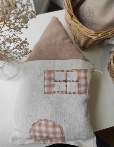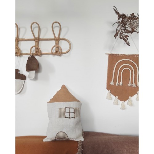 Guirlande fanion demi lune lin et carreaux vichy beige