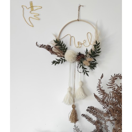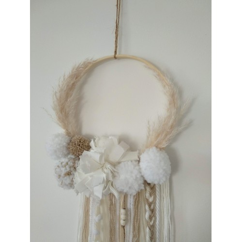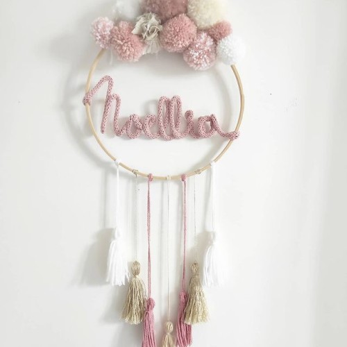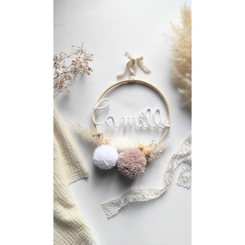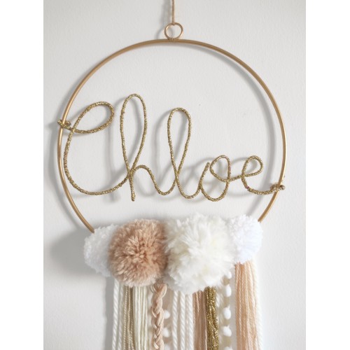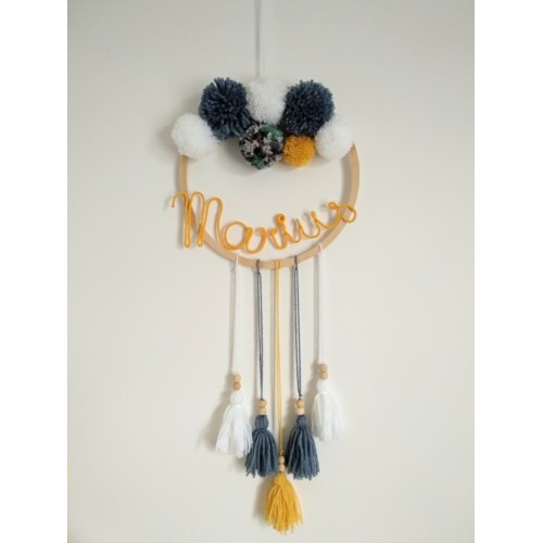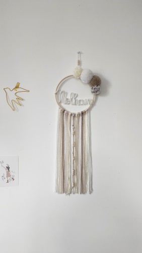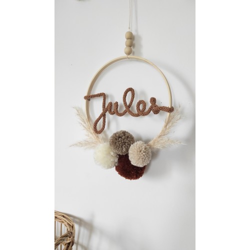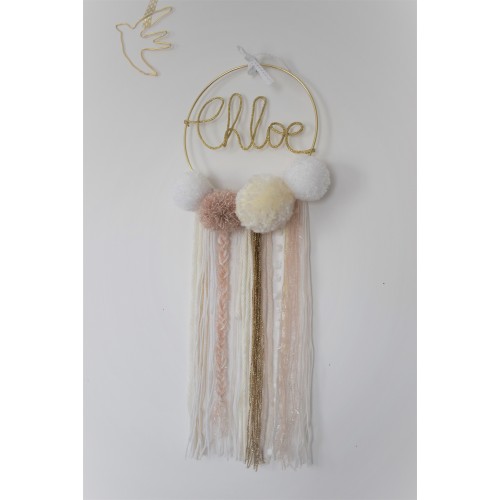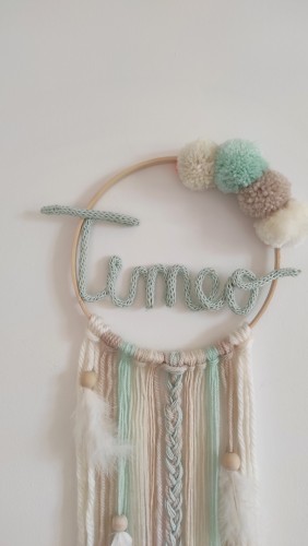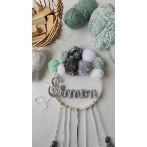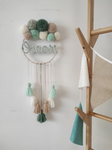 Attrape rêve pompons prénom chambre vert d'eau beige