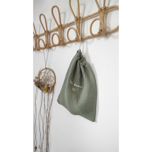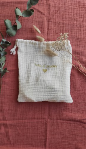 Pochon XL pochette sac crèche, nounou, ecole tissu gaze de coton à personnaliser