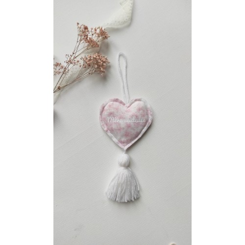 Guirlande fanion demi lune rose poudré et carreaux vichy beige