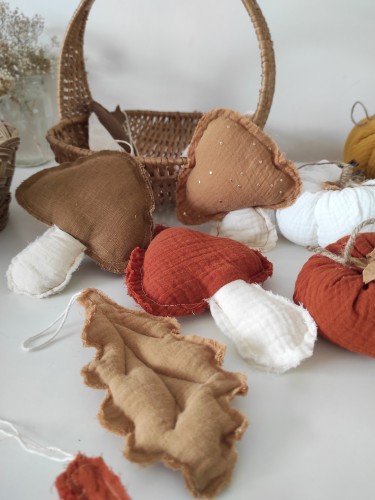 Guirlande fanion gaze de coton fleurs vert sauge et beige