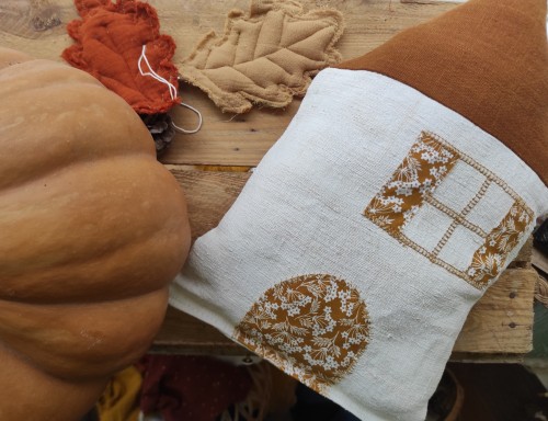 Fleur tissu rose fait main en teinture végétale slow déco responsable et éthique